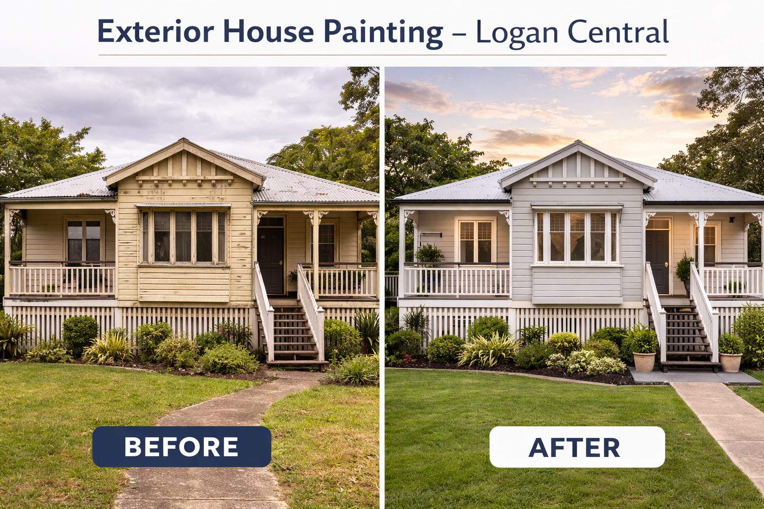 Complete exterior transformation of a classic Queenslander with weather-resistant paint